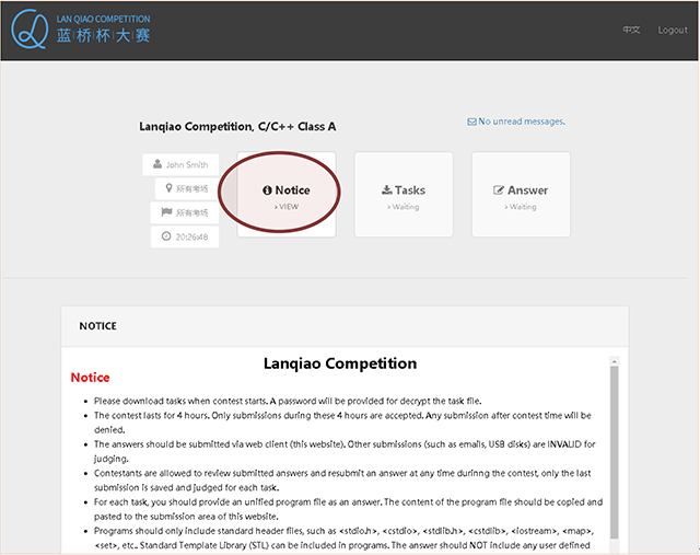 When login into the system, a notice will be presented to you, it tells you some important rules related to scoring. Please read the notice carefully. If your submissions violate the rules, they may be judged as WRONG.